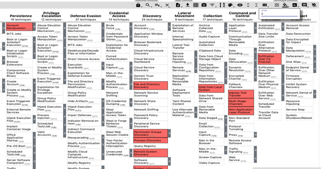 We only used one APT group in our example above, but you can overlap many APT group TTPs onto a single layer by adding additional tabs. I’ll show you how to overlap APT3 onto the same layer below.